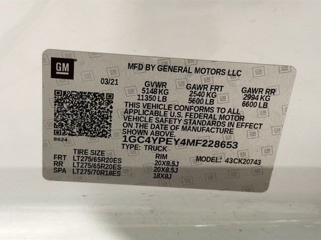Certified. CARFAX One-Owner. Summit White 2021 Chevrolet Silverado 2500HD LTZ 4WD 10-Speed Automatic Duramax 6.6L V8 Turbodiesel Silverado 2500HD LTZ, 4D Crew Cab, Duramax 6.6L V8 Turbodiesel, 10-Speed Automatic, 4WD, Summit White, Jet Black Leather, 10-Way Power Driver Seat Adjuster w/Lumbar, 10-Way Power Passenger Seat Adjuster w/Lumbar, 12-Volt Rear Auxiliary Power Outlet, 120-Volt Bed Mounted Power Outlet, 120-Volt Instrument Panel Power Outlet, 15 Diagonal Multicolor Head-Up Display, 170 Amp Alternator, 1st & 2nd Row All-Weather Floor Liners (LPO) (AAK), 2 USB Ports (1st Row), 2 USB Ports & 1 SD Card Reader, 2-Speed Active Electronic AutoTrac Transfer Case, 4.2 Diagonal Color Display DIC, 4G LTE Wi-Fi Hotspot Capable, 8 Diagonal Multicolor Digital Display DIC, Apple CarPlay/Android Auto, Auto-Dimming Inside Rear-View Mirror, Automatic Emergency Braking, Bed View Camera w/2 Trailer Camera Provisions, Black Chevytec Spray-On Bedliner w/Chevrolet Logo, Bluetooth® For Phone, BOSE Premium 7-Speaker Sound System, Chevrolet Connected Access Capable, Chrome Front Grille, Chrome Mirror Caps, Color-Keyed Carpeting Floor Covering, Compass, Deep-Tinted Glass, Driver Memory, Dual Charge-Only USB Ports (2nd Row), Electric Rear-Window Defogger, Electrical Lock Control Steering Column, Electronic Cruise Control w/Set & Resume Speed, Engine Block Heater, Exhaust Brake, Floor-Mounted Center Console, Following Distance Indicator, Forward Collision Alert, Front Bucket Seats w/Center Console, Front LED Fog Lamps, Front Rubberized Vinyl Floor Mats, Gooseneck/5th Wheel Package, Gooseneck/5th Wheel Prep Package, HD Radio, HD Rear Vision Camera, HD Surround Vision w/2 Trailer View Cam Provisions, Heated & Auto-Dim Pwr Vertical Trailering Mirrors, Heated 2nd Row Outboard Seats, Heated Driver & Front Outboard Passenger Seating, Heated front seats, Heated Steering Wheel, Heated steering wheel, Hill Descent Control, Hitch Guidance w/Hitch View, Integrated Trailer Brake Controller, IntelliBeam Automatic High Beam On/Off, Keyless Open & Start, Lane Change Alert w/Side Blind Zone Alert, Lane Departure Warning System, Leather-Wrapped Steering Wheel, LED Cargo Area Lighting, LED Smoked Amber Roof Marker Lamps, LTZ Convenience Package, LTZ Convenience Package II, LTZ Premium Package, Manual Tailgate Function w/EZ Lift, Manual Tilt & Telescoping Steering Column, Navigation System, Off-Road Suspension, OnStar & Chevrolet Connected Services Capable, Power Door Locks, Power Front Windows w/Driver Express Up/Down, Power Front Windows w/Passenger Express Up/Down, Power Rear Windows w/Express Down, Power Sliding Rear Window w/Defogger, Power Sunroof, Preferred Equipment Group 1LZ, Radio: Chevrolet Infotainment 3 Premium System, Rear Camera Mirror, Rear Cross Traffic Alert, Rear Rubberized Vinyl Floor Mats, Rear Wheelhouse Liners, Remote Vehicle Starter System, Safety Alert Seat, Safety Package, Safety Package II, SiriusXM w/360L, Split folding rear seat, Steering Wheel Audio Controls, Suspension Package, Technology Package, Ultrasonic Front & Rear Park Assist, Unauthorized Entry Theft-Deterrent System, Universal Home Remote, Up-Level Rear Seat w/Storage Package, Ventilated Driver & Front Passenger Seats, Wheels: 20 6-Spoke Polished Aluminum, Wireless Charging, Wireless Phone Projection, Z71 Off-Road & Protection Package, Z71 Off-Road Package.