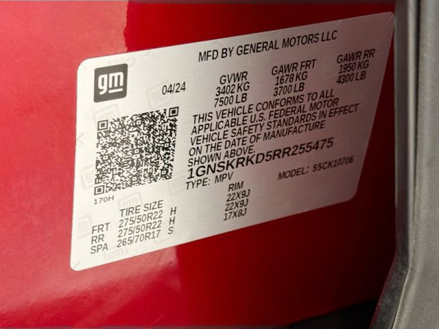 CARFAX One-Owner. Radiant Red Tintcoat 2024 Chevrolet Tahoe RST 4WD 10-Speed Automatic with Overdrive EcoTec3 5.3L V8 Tahoe RST, 4D Sport Utility, EcoTec3 5.3L V8, 10-Speed Automatic with Overdrive, 4WD, Radiant Red Tintcoat, Jet Black/Victory Red Leather, 10-Way Power Driver & Passenger Seat Adjusters, 1st & 2nd Row Color-Keyed Carpeted Floor Mats, 1st, 2nd & 3rd Rows All-Weather Floor Liners (LPO), 2 USB Data Ports in Center Console Delete, 2-Speed Active Electronic AutoTrac Transfer Case, 2nd Row Pwr Release 60/40 Split-Folding Bench Seat, 3rd Row 60/40 Power-Folding Split-Bench Seat, Adaptive Cruise Control, Advanced Trailering Package, Apple CarPlay/Android Auto, Auto-Dimming Inside Rear-View Mirror, Black Illuminated Front Bowtie Emblem (LPO), Bose 9-Speaker Stereo Audio System Feature, Bright Front & Rear Door Sill Plates, Color-Keyed Carpeting Floor Covering, Driver & Front Outboard Passenger Airbags, Driver Alert Package, Dual-Pane Power Panoramic Sunroof, Enhanced Automatic Emergency Braking, Enhanced Driver Information Center, Extra Capacity Cooling System, Floor Console w/Storage Area, Front dual zone A/C, Front High-Back Reclining Bucket Seats, Hands-Free Rear Power Programmable Liftgate, HD Surround Vision, Heated 2nd Row Outboard Seats, Heated Driver & Front Passenger Seats, Heated front seats, Heated Steering Wheel, Hitch View w/Pan/Zoom Image Adjustment, Integrated Trailer Brake Controller, Lane Change Alert w/Side Blind Zone Alert, LED Daytime Running Lamps, License Plate Front Mounting Package, Luxury Package, Max Trailering Package, Memory Settings, Memory Settings for Driver, Navigation System, Outside Heated Power-Adjustable Mirrors, Power Liftgate, Power Tilt & Telescopic Steering Column, Preferred Equipment Group 1SP, Premium audio system: Chevrolet Infotainment 3 Premium, Rear Cross Traffic Alert, Rear Pedestrian Alert, Remote Start, SiriusXM w/360L, Smart Trailer Integration Indicator, Universal Home Remote, Wireless Charging, Wrapped Steering Wheel.