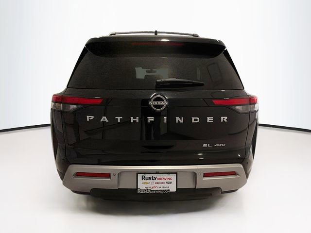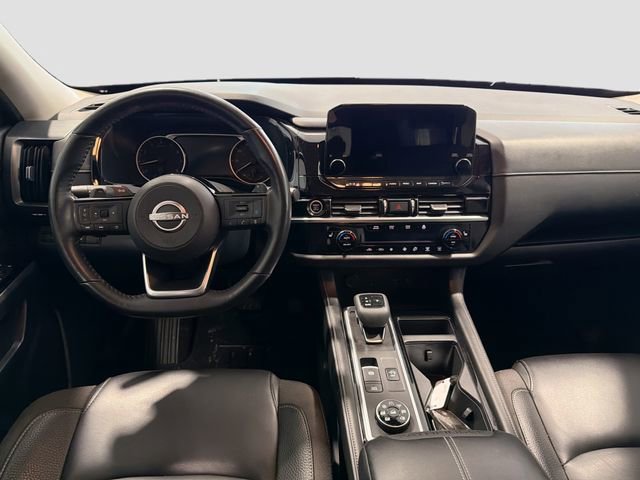 CARFAX One-Owner. Super Black 2023 Nissan Pathfinder SL 4WD 9-Speed Automatic V6 Pathfinder SL, 4D Sport Utility, V6, 9-Speed Automatic, 4WD, Super Black, Charcoal Leather, 18 Machined Alloy Wheels, 3rd row seats: bench, Black Splash Guards (Set of 4), Exterior Parking Camera Rear, Front dual zone A/C, Heated Front Bucket Seats, Heated front seats, Navigation system: NissanConnect Navigation, Power Liftgate, Reclining 3rd row seat, Spoiler.