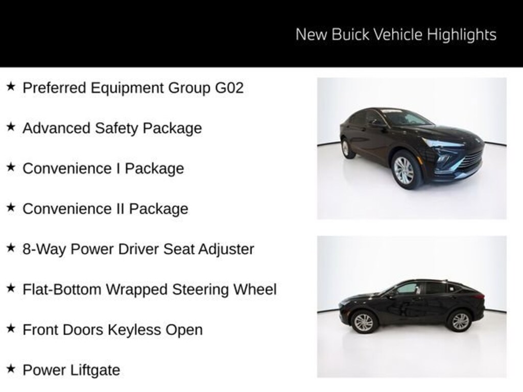 Ebony Twilight Metallic 2026 Buick Envista Preferred FWD 6-Speed Automatic ECOTEC 1.2L Turbo Envista Preferred, 4D Sport Utility, ECOTEC 1.2L Turbo, 6-Speed Automatic, FWD, Ebony Twilight Metallic, Ebony Seats Interior Premium Synthetic, 2-Way Power Driver Lumbar Control, 8-Way Power Driver Seat Adjuster, Adaptive Cruise Control, Advanced Safety Package, Convenience I Package, Convenience II Package, Exterior Parking Camera Rear, Flat-Bottom Wrapped Steering Wheel, Front Doors Keyless Open, Front Intermittent Rainsense Wipers, Heated Driver and Front Passenger Seats, Heated Steering Wheel, Lane Change Alert with Side Blind Zone Alert, Power Liftgate, Preferred Equipment Group G02, Rear Cross Traffic Alert, Wireless Charging.