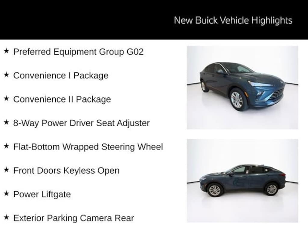 Ocean Blue Metallic 2026 Buick Envista Preferred FWD 6-Speed Automatic ECOTEC 1.2L Turbo Envista Preferred, 4D Sport Utility, ECOTEC 1.2L Turbo, 6-Speed Automatic, FWD, Ocean Blue Metallic, Ebony Seats Interior Premium Synthetic, 2-Way Power Driver Lumbar Control, 8-Way Power Driver Seat Adjuster, Convenience I Package, Convenience II Package, Exterior Parking Camera Rear, Flat-Bottom Wrapped Steering Wheel, Front Doors Keyless Open, Front Intermittent Rainsense Wipers, Heated Driver and Front Passenger Seats, Heated Steering Wheel, Power Liftgate, Preferred Equipment Group G02, Wireless Charging.