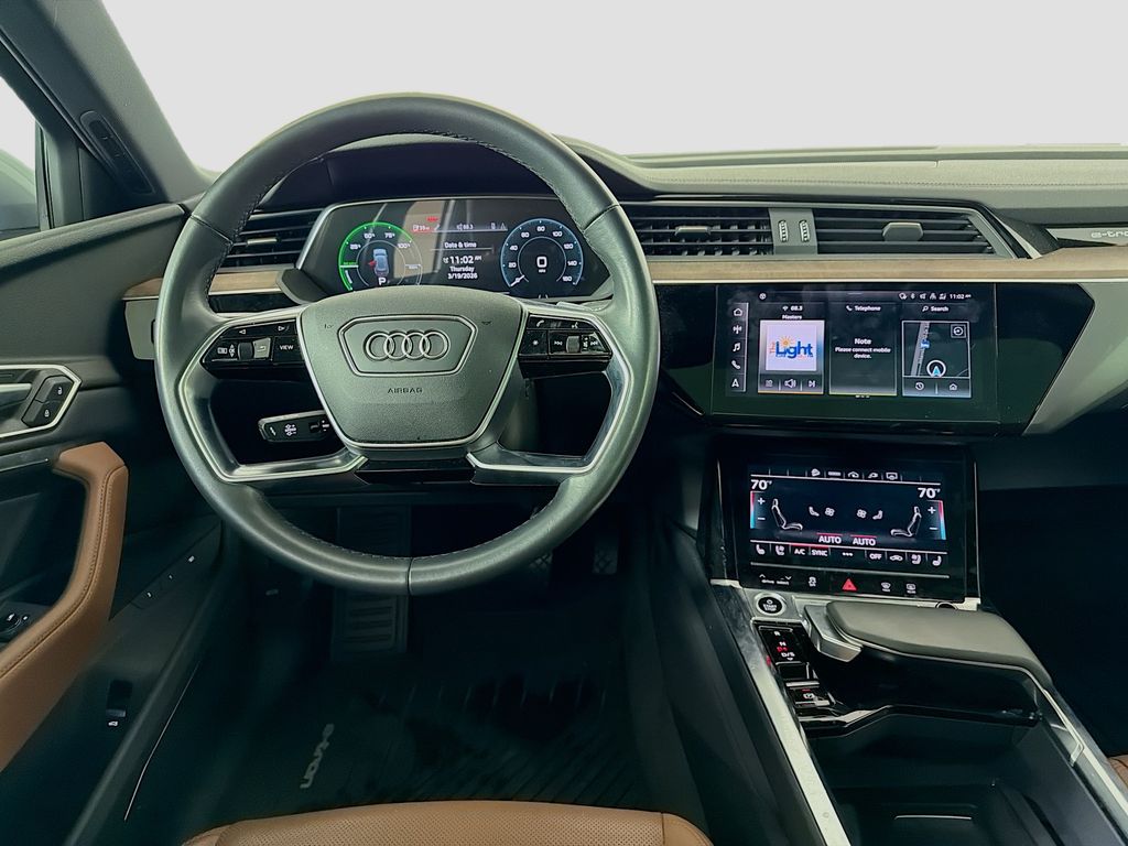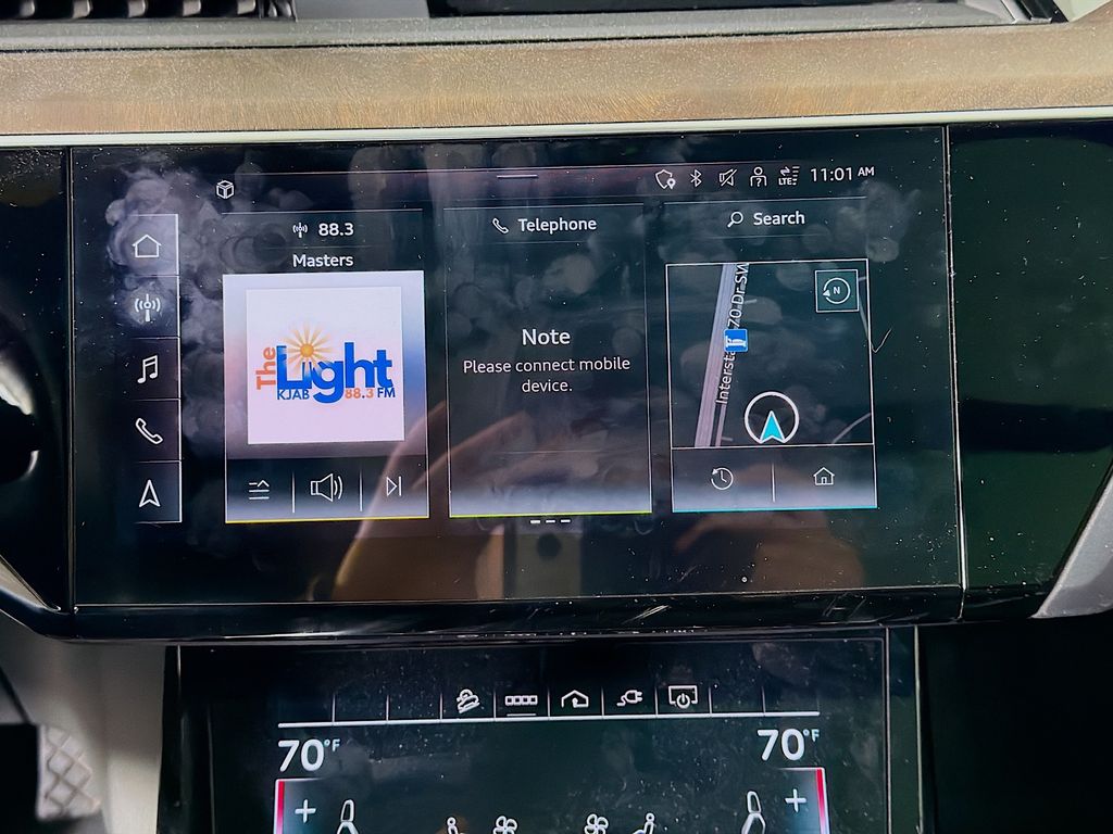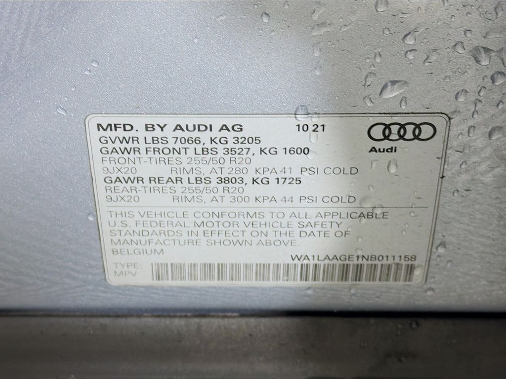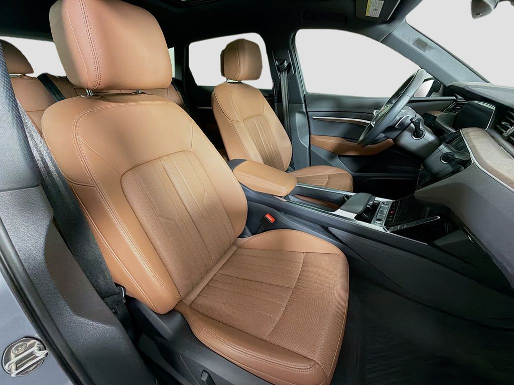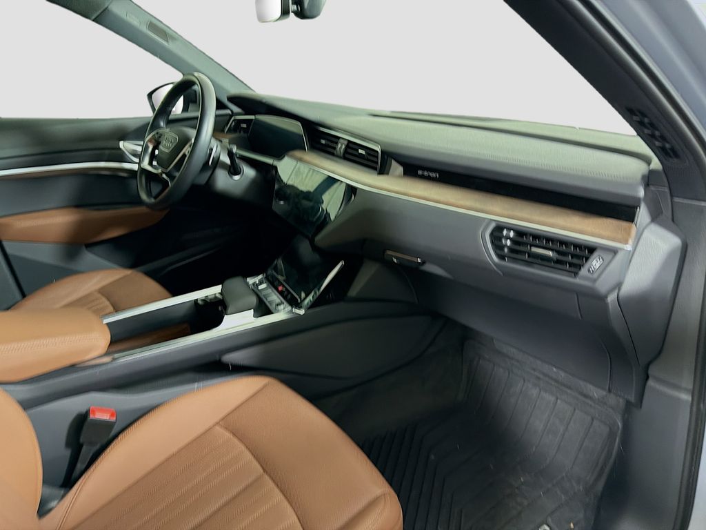 CARFAX One-Owner. Clean CARFAX. Florett Silver Metallic 2022 Audi e-tron quattro quattro Single-Speed Automatic Electric Motor Back Up Camera, Moonroof, Leather, Heated Seats, 4D Sport Utility, Electric Motor, Single-Speed Automatic, quattro, Okapi Brown w/Leather Seating Surfaces or Valcona Semi-Aniline Leather Seat Trim, 2nd Charge Port (AC Passenger Side), Adaptive Cruise Assist w/Lane Guidance, Ambient Interior Lighting Package, Audi e-tron Beam Front & Rear Doors, Audi Phone Box w/Wireless Charging, Audi smartphone interface (Apple CarPlay/Android Auto), Bang & Olufsen 3D Premium Sound System, Exterior Parking Camera Rear, Front dual zone A/C, Heated 8-Way Power Front Seats, Heated front seats, Heated Rear Seats, Heated steering wheel, Illuminated Front & Rear Aluminum Door Sills, Matrix-Design LED Headlights, Navigation system: Audi MMI Navigation plus with Touch Response, Power moonroof: Panoramic, Premium Plus Package, Top View Camera System, Traffic Sign Recognition, Ventilated Front Seats, Wheels: 20" 5-Arm-Dynamic Design Bi-Color Finish.