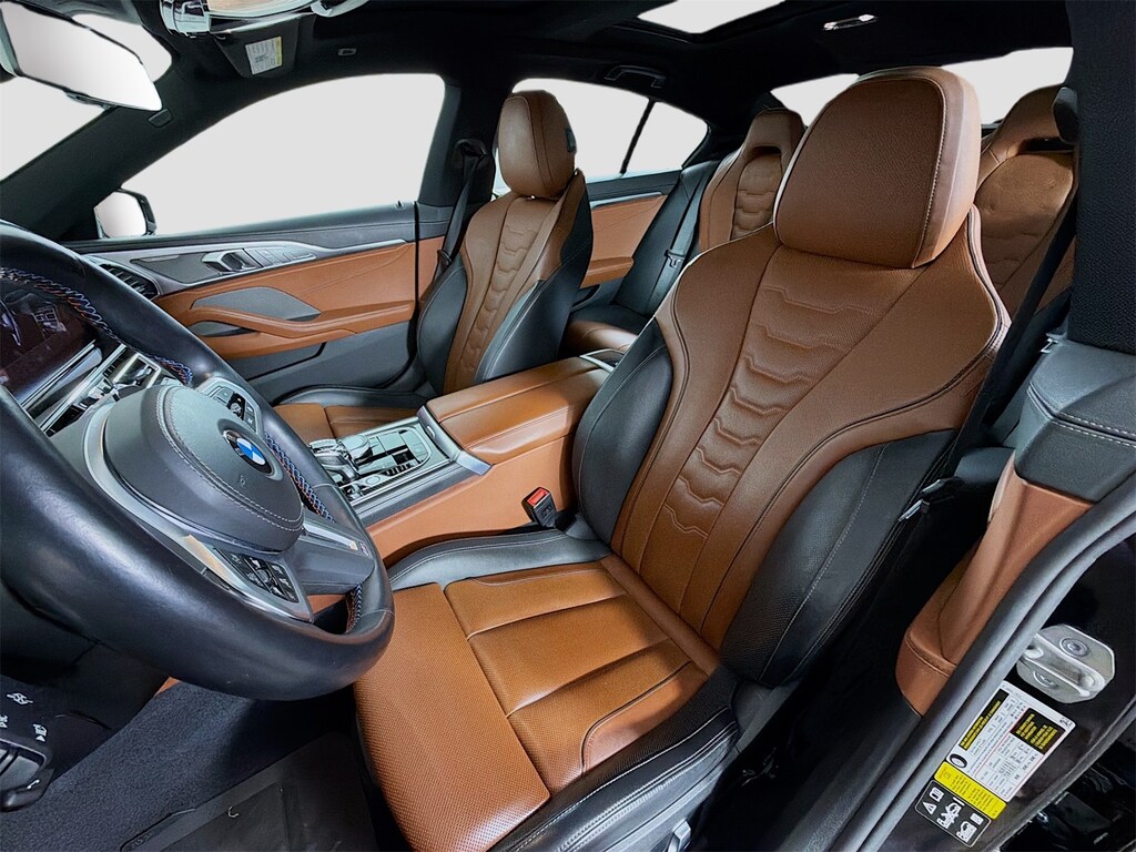 Recent Arrival! Odometer is 16762 miles below market average! Back Up Camera, Heated Seats, Moonroof, Leather, Head-Up Display, 8 Series M850i xDrive Gran Coupe, 4D Sedan, 4.4L V8 32V TwinPower Turbo, 8-Speed Automatic Sport, AWD, Carbon Black Metallic, Tartufo/Black Leather, Active Blind Spot Detection, Active Driving Assistant, Active Driving Assistant Pro, Active Park Distance Control, Apple CarPlay & Android Auto Compatibility, BMW Assist eCall, BMW TeleServices, Connected Package Pro, ConnectedDrive Services, Driving Assistance Package, Driving Assistance Professional Package, Extended Shadowline Trim, Extended Traffic Jam Assistant, Exterior Parking Camera Rear, Front & Rear Heated Seats, Front dual zone A/C, Harman/Kardon Surround Sound System, Head-Up Display, Heated Front Seats w/Armrests & Steering Wheel, Heated steering wheel, Live Cockpit Pro w/Navi, M Performance Package, M Shadowline Lights, M Sport Brakes w/Black Calipers, M Sport Professional Package, Parking Assistant Plus, Power moonroof: Panorama, Rear-View Camera, Steering wheel mounted audio controls, Surround View w/3D View, Ventilated front seats, Wheels: 20" x 8" Fr & 20" x 9" Rr Double Spoke (1E5), WiFi Hotspot, Wireless Charging.