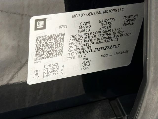 Certified. Black Raven 2021 Cadillac Escalade Sport 4WD 10-Speed Automatic with Overdrive 6.2L V8 Escalade Sport, 4D Sport Utility, 6.2L V8, 10-Speed Automatic with Overdrive, 4WD, Black Raven, Brandy w/Very Dark Atmosphere Accents w/Full Leather Seats w/Faceted Quilting, 16.9 Diagonal OLED Infotainment Screen, 2-Presets Memory For Driver Seat Adjuster, 3rd row seats: split-bench, Adaptive Cruise Control, Air Ionizer, Air Ride Adaptive Suspension, AKG Studio 19-Speaker Audio System, Apple CarPlay/Android Auto, Automatic Emergency Braking, Automatic Seat Belt Tightening, Body-Color Door Handles, Door Lock & Latch Shields, Driver Assist Tech Package, Electronic Cruise Control w/Set & Resume Speed, Electronic Limited-Slip Differential, Enhanced Automatic Emergency Braking, Enhanced Automatic Parking Assist, Front dual zone A/C, Glass Breakage Sensor, HD Radio, Heads-Up Display, Heated & Ventilated Driver & Front Passenger Seats, Heated Driver & Front Passenger Seats, Heated front seats, Heated steering wheel, Hitch Guidance w/Hitch View, Illuminating Front & Rear Sill Plates, In-Vehicle Trailering System App, Integrated Trailer Brake Controller, Lane Keep Assist w/Lane Departure Warning, Leather Seating Surfaces w/Precision Perf Inserts, Navigation System, Power Liftgate, Power Panoramic Tilt-Sliding Sunroof, Preferred Equipment Group 1SC, Radio: AM/FM/SiriusXM w/Navigation, Rear Camera Mirror, Rear Camera Mirror Washer, Rear Cross Traffic Alert, Reconfigurable Full-Color Head-Up Display, Reverse Automatic Braking, Roof rack: rails only, Running Board Assist Steps, SiriusXM w/360L, Soft Closing Front & Rear Doors, Teen Driver, Theft-Deterrent Alarm System, Trailer Side Blind Zone Alert, Vehicle Inclination Sensor, Vehicle Interior Movement Sensor, Ventilated front seats, Wheels: 22 12-Spoke Polished Alloy, Wireless Apple CarPlay/Wireless Android Auto.