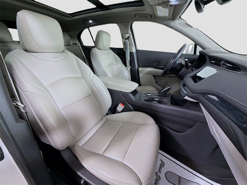 CARFAX One-Owner. Crystal White Tricoat 2021 Cadillac XT4 Premium Luxury FWD 9-Speed Automatic 2.0L I4 Turbocharged Back Up Camera, Moonroof, Leather, Heated Seats, XT4 Premium Luxury, 4D Sport Utility, 2.0L I4 Turbocharged, 9-Speed Automatic, FWD, Crystal White Tricoat, Black Leather, 2-Way Driver Seat Power Lumbar Control, 2-Way Passenger Seat Power Lumbar Control, 4-Way Driver Seat Power Lumbar Control, 4-Way Passenger Seat Power Lumbar Control, 4.2" Diagonal Color Display Driver Info Center, 6-Way Power Passenger Seat Adjuster, 7-Speaker Audio System w/Auxiliary Amplifier, 8-Way Power Passenger Seat Adjuster, Apple CarPlay/Android Auto, Auto-Dimming Inside Rear-View Mirror, Automatic Emergency Braking, Bose Centerpoint Surround Sound 13-Speaker System, Cold Weather Package, Comfort & Convenience Package, Cruise Control w/Set & Resume Speed, Driver Awareness Package, Dual Panel Glass Sunroof w/Power Tilt/Sliding, Exterior Parking Camera Rear, Following Distance Indicator, Front & Rear Park Assist, Front dual zone A/C, HD Radio, HD Rear Vision Camera, Heated Automatic Steering Wheel, Heated Driver & Front Passenger Seats, Heated Rear Outboard Seating Positions, IntelliBeam Automatic High Beam Control, Lane Keep Assist w/Lane Departure Warning, Manual Rake & Telescopic Steering Column, Power Liftgate, Power Lumbar Massage Driver Seat, Power Lumbar Massage Front Passenger Seat, Preferred Equipment Group 1SD, Radio: Cadillac User Experience AM/FM Stereo, Radio: Cadillac User Experience w/Embedded Nav, Roof rack: rails only, SD Card Reader, SiriusXM w/360L, Ventilated Driver & Front Passenger Seats, Wheels: 18" 10-Spoke Pearl Nickel Finish Alloy, Wireless Apple CarPlay/Wireless Android Auto.