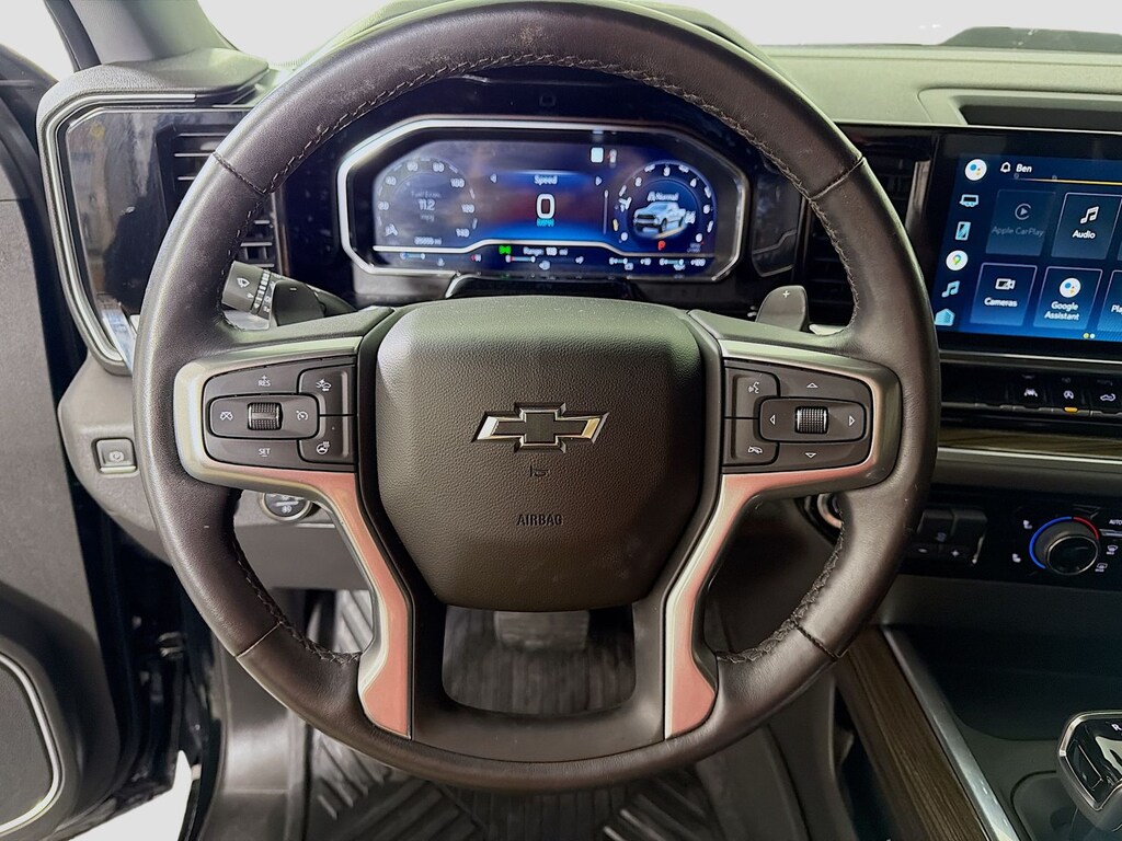 2022 Chevrolet Silverado 1500 LT Trail Boss Black Odometer is 35183 miles below market average! Back Up Camera, Heated Seats, Leather, Tow Package, Silverado 1500 LT Trail Boss, 4D Crew Cab, EcoTec3 5.3L V8, 10-Speed Automatic, 4WD, Black, Black Leather, 10-Way Power Driver Seat w/Lumbar, 12.3" Multicolor Reconfigurable Digital Display, 120-Volt Bed Mounted Power Outlet, 120-Volt Instrument Panel Power Outlet, 6-Speaker Audio System, All-Weather Floor Liner (LPO) (AAK), Apple CarPlay/Android Auto, Auto-Locking Rear Differential, Auxiliary External Transmission Oil Cooler, Bluetooth® For Phone, Chevrolet Connected Access Capable, Chevytec Spray-On Black Bedliner, Color-Keyed Carpeting Floor Covering, Compass, Convenience Package, Convenience Package II, Deep-Tinted Glass, Dual Exhaust w/Polished Outlets, Dual Rear USB Ports (Charge Only), Dual-Zone Automatic Climate Control, Electric Rear-Window Defogger, Electrical Steering Column Lock, Electronic Cruise Control, Electronic Transmission Range Selector Shifter, External Engine Oil Cooler, EZ Lift Power Lock & Release Tailgate, Following Distance Indicator, Forward Collision Alert, Front LED Fog Lamps, Front Pedestrian Braking, Fully automatic headlights, HD Rear Vision Camera, Heated Driver & Front Outboard Passenger Seats, Heated Power-Adjustable Outside Mirrors, Heated Steering Wheel, Heated steering wheel, Heavy-Duty Air Filter, High Gloss Black Mirror Caps, Hill Descent Control, Hitch Guidance, Hitch Guidance w/Hitch View, Inside Rear-View Mirror w/Tilt, Integrated Trailer Brake Controller, Keyless Open & Start, Lane Keep Assist w/Lane Departure Warning, Leather Package, Leather Wrapped Steering Wheel, Leather-Appointed Front Seat Trim, LED Cargo Area Lighting, Manual Tilt/Telescoping Steering Column, OnStar & Chevrolet Connected Services Capable, Performance Red Recovery Hooks, Power Front Windows w/Driver Express Up/Down, Power Front Windows w/Passenger Express Down, Power Rear Windows w/Express Down, Power Sliding Rear Window w/Rear Defogger, Preferred Equipment Group 2LT, Premium Bose 7-Speaker Sound System, Protection Package, Rear 60/40 Folding Bench Seat (Folds Up), Rear Wheelhouse Liners, Remote Vehicle Starter System, SiriusXM w/360L, Standard Tailgate, Steering Wheel Audio Controls, Suspension Package, Theft Deterrent System (Unauthorized Entry), Trailering App, Trailering Package, Universal Home Remote, Up-Level Rear Seat w/Storage Package, Wheels: 20" x 9" High Gloss Black Painted Alum, Wi-Fi Hot Spot Capable, Wireless Charging, Wireless Phone Projection. Clean CARFAX.