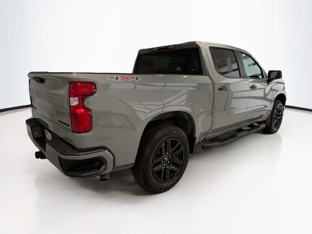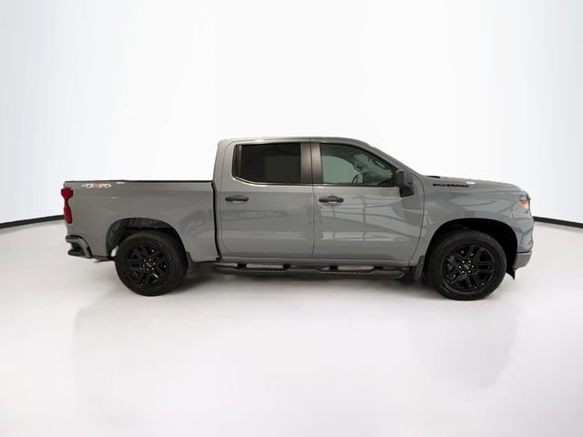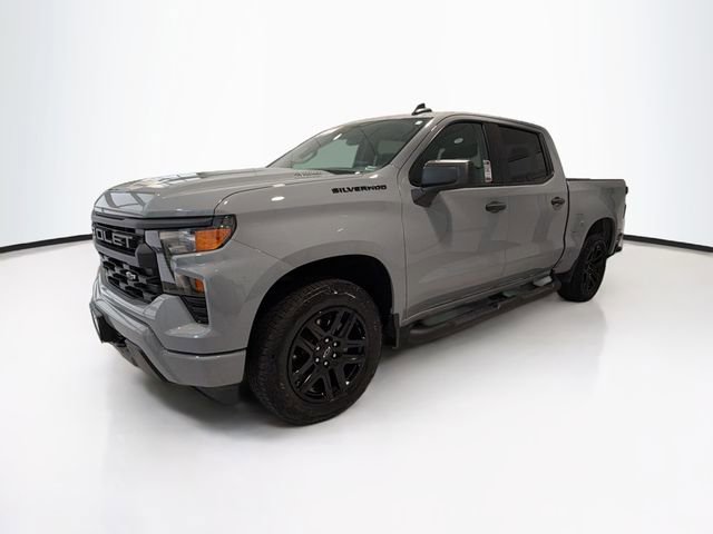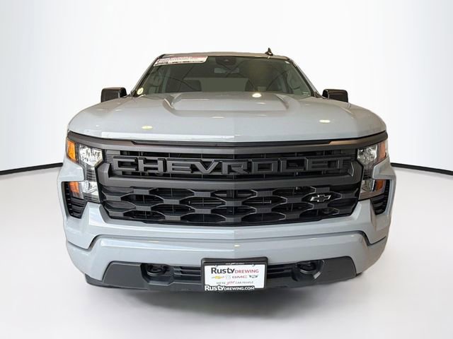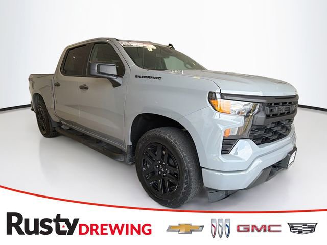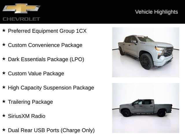 CARFAX One-Owner. Slate Gray Metallic 2024 Chevrolet Silverado 1500 Custom 4WD 8-Speed Automatic 2.7L I4 Turbocharged DOHC 16V LEV3-SULEV30 310hp Silverado 1500 Custom, 4D Crew Cab, 2.7L I4 Turbocharged DOHC 16V LEV3-SULEV30 310hp, 8-Speed Automatic, 4WD, Slate Gray Metallic, Jet Black Cloth, 10-Way Power Driver Seat w/Lumbar, 120-Volt Bed Mounted Power Outlet, 120-Volt Interior Power Outlet, 3.5 Monochromatic Display Driver Info Center, 4 Black Round Assist Steps (LPO), Automatic Emergency Braking, Black Name Plates (LPO), Black Tailgate CHEVROLET Lettering (LPO), Bluetooth® For Phone, Chevrolet Connected Access Capable, Color-Keyed Carpeting Floor Covering, Custom Convenience Package, Custom Value Package, Dark Essentials Package (LPO), Deep-Tinted Glass, Dual Rear USB Ports (Charge Only), Electric Rear-Window Defogger, Electrical Steering Column Lock, Electronic Cruise Control, EZ Lift Power Lock & Release Tailgate, Following Distance Indicator, Forward Collision Alert, Front Frame-Mounted Black Recovery Hooks, Front Pedestrian Braking, Front Rubberized Vinyl Floor Mats, HD Rear Vision Camera, High Capacity Suspension Package, Hitch Guidance, LED Cargo Area Lighting, Manual Tilt Wheel Steering Column, OnStar & Chevrolet Connected Services Capable, Power Front Windows w/Driver Express Up/Down, Power Front Windows w/Passenger Express Down, Power Rear Windows w/Express Down, Preferred Equipment Group 1CX, Rear 60/40 Folding Bench Seat (Folds Up), Rear Rubberized-Vinyl Floor Mats, Remote Keyless Entry, Remote Vehicle Starter System, SiriusXM Radio, Standard Tailgate, Theft Deterrent System (Unauthorized Entry), Trailering Package, Wheels: 20 x 9 High Gloss Black Painted Alum, Wi-Fi Hot Spot Capable.
