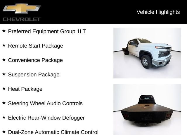 CARFAX One-Owner. Summit White 2024 Chevrolet Silverado 3500HD LT 4WD 10-Speed Automatic Duramax 6.6L V8 Turbodiesel Silverado 3500HD LT, 4D Crew Cab, Duramax 6.6L V8 Turbodiesel, 10-Speed Automatic, 4WD, Summit White, Jet Black Cloth, 10-Way Power Driver Seat Adjuster w/Lumbar, 17 Painted Steel Wheels, 170 Amp Alternator, 2-Speed Electronic Shift Transfer Case, 4-Way Manual Driver Seat Adjuster, Black Mirror Caps, Bluetooth® For Phone, Color-Keyed Carpeting Floor Covering, Compass Located In Instrument Cluster, Convenience Package, Deep-Tinted Glass, Dual 220-Amps Primary/170-Amps Aux Alternators, Dual-Zone Automatic Climate Control, Electric Rear-Window Defogger, Engine Block Heater, Exhaust Brake, Front LED Fog Lamps, Heat Package, Heated Driver & Front Outboard Passenger Seats, Heated Steering Wheel, Keyless Open & Start, Manual Tilt-Wheel Steering Column, Manual Tilt-Wheel/Telescoping Steering Column, Power Rear Windows w/Express Down, Power Take-Off, Preferred Equipment Group 1LT, Rear 60/40 Folding Bench Seat (Folds Up), Remote Start Package, Remote Vehicle Starter System, Steering Wheel Audio Controls, Steering Wheel Mounted Electronic Cruise Control, Suspension Package, Unauthorized Entry Theft-Deterrent System, Wrapped Steering Wheel.