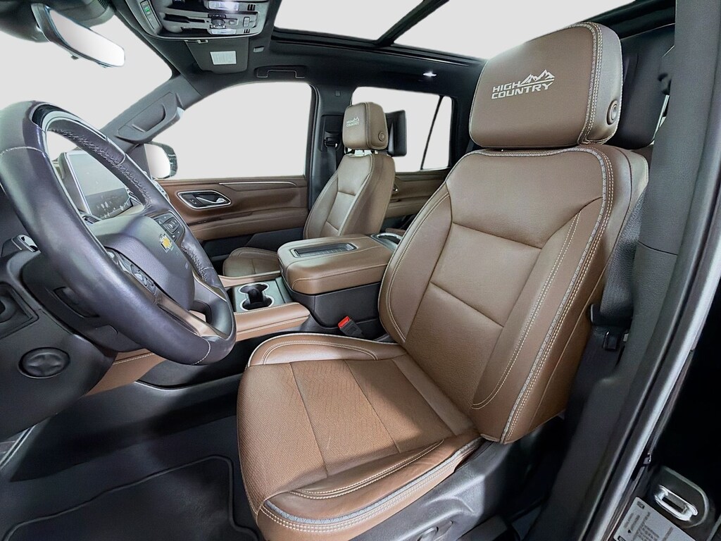 2024 Chevrolet Tahoe High Country Black Recent Arrival! Odometer is 926 miles below market average! Back Up Camera, 3rd Row Seats, Moonroof, Leather, Carfax One Owner, Head-Up Display, Tahoe High Country, 4D Sport Utility, EcoTec3 6.2L V8, 10-Speed Automatic with Overdrive, 4WD, Black, Jet Black/Mocha Leather, 12-Way Power Driver & Passenger Seat Adjusters, 15" Diagonal Multi-Color Head-Up Display, 1st & 2nd Row Color-Keyed Carpeted Floor Mats, 2-Speed Active Electronic AutoTrac Transfer Case, 3rd Row 60/40 Power-Folding Split-Bench Seat, 3rd row seats: split-bench, Adaptive Cruise Control, Advanced Technology Package, Advanced Trailering Package, Apple CarPlay/Android Auto, Automatic temperature control, Bose 10-Speaker Centerpoint Surround Audio Sys Ft, Bright Front & Rear Door Sill Plates, Chrome Door Handles w/Body-Color Strip, Color-Keyed Carpeting Floor Covering, Driver & Front Outboard Passenger Airbags, Driver & Front Passenger Heated & Ventilated Seats, Dual Exhaust System, Dual-Pane Power Panoramic Sunroof, Enhanced Automatic Emergency Braking, Enhanced Automatic Parking Assist, Enhanced Driver Information Center, Exterior Parking Camera Rear, Extra Capacity Cooling System, Floor Console, Front High-Back Reclining Bucket Seats, Hands-Free Rear Power Programmable Liftgate, HD Surround Vision, Head-Up Display, Heated 2nd Row Outboard Seats, Heated Driver & Front Passenger Seats, Heated Steering Wheel, Heated steering wheel, Hill Descent Control, Hitch View w/Pan/Zoom Image Adjustment, Inside Rearview Auto-Dimming Rear Camera Mirror, Integrated Trailer Brake Controller, Lane Change Alert w/Side Blind Zone Alert, LED Daytime Running Lamps, License Plate Front Mounting Package, Max Trailering Package, Memory Settings, Outside Heated Power-Adjustable Mirrors, Perforated Leather Seat Trim, Power Release 2nd Row Bucket Seats, Power Tilt & Telescopic Steering Column, Preferred Equipment Group 3LZ, Rear Camera Mirror Washer, Rear Cross Traffic Alert, Rear Pedestrian Alert, Remote Start, Reverse Automatic Braking, Safety Alert Seat, Set of 4 Wheel Locks (LPO), SiriusXM w/360L, Smart Trailer Integration Indicator, Super Cruise, Trailer Side Blind Zone Alert, Universal Home Remote, Ventilated front seats, Wheels: 22" x 9" Sterling Silver Premium Painted, Wireless Charging, Wrapped Steering Wheel. CARFAX One-Owner.