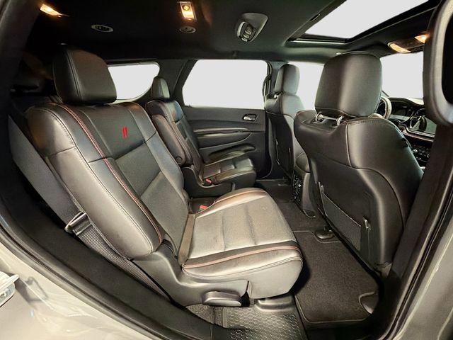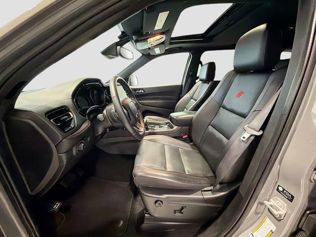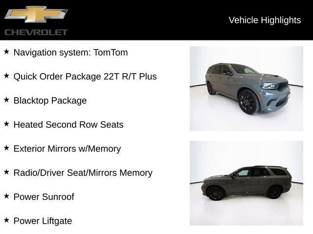 CARFAX One-Owner. Gray Clearcoat 2023 Dodge Durango R/T Plus AWD 8-Speed Automatic HEMI 5.7L V8 Multi Displacement VVT Durango R/T Plus, 4D Sport Utility, HEMI 5.7L V8 Multi Displacement VVT, 8-Speed Automatic, AWD, Gray Clearcoat, Black Leather, 115V Auxiliary Power Outlet, 7 & 4 Pin Wiring Harness, Adaptive Cruise Control w/Stop, Auto-Dimming Exterior Driver Mirror, Black Roof Rails, Blacktop Package, Class IV Receiver Hitch, Dual Remote USB Port - Charge Only, Exterior Mirrors w/Heating Element, Exterior Mirrors w/Memory, Exterior Mirrors w/Supplemental Signals, Floor Console w/Leather Armrest, Full Speed Forward Collision Warning Plus, Gloss Black Badges, Gloss Black Exterior Mirrors, Heated Second Row Seats, Integrated Roof Rail Crossbars, Leather Trimmed Bucket Seats, Leather Wrapped Door Panels, LED Auxiliary Low Beam & Turn Signal, Navigation system: TomTom, ParkView Rear Back-Up Camera, Power 6x9 Multi-Function Foldaway Mirrors, Power 8-Way Driver Memory 8-Way Passenger Seats, Power Driver/Passenger 4-Way Lumbar Adjust, Power Liftgate, Power Sunroof, Power Tilt & Telescopic Steering Column, Premium LED Fog Lamps, Quick Order Package 22T R/T Plus, Radio/Driver Seat/Mirrors Memory, Red Accent Stitching, Satin Black Dodge Tail Lamp Badge, Trailer Brake Control, Ventilated Front Seats.