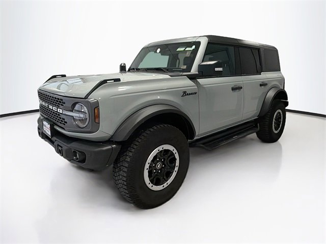 CARFAX One-Owner. Cactus Gray 2023 Ford Bronco Badlands 4WD 10-Speed Automatic 2.7L EcoBoost V6 Bronco Badlands, 4D Sport Utility, 2.7L EcoBoost V6, 10-Speed Automatic, 4WD, Cactus Gray, Black Onyx Vinyl, 12" LCD Capacitive Touchscreen w/Swipe Capability, 2-Door Intelligent Access w/Lock/Unlock, 360-Degree Camera, 4.7 Final Drive Ratio, Additional Sound Deadening, Ambient Footwell Lighting, Auto-Dimming Interior Rear-View Mirror, BLIS Blind Spot Information System, Carbonized Gray Molded-In-Color Hard Top, Connected Navigation, Dr & Pass Illuminated Sliding Visor Vanity Mirrors, Dual-Zone Electronic Automatic Temperature Control, Enhanced Voice Recognition, Equipment Group 333A High Package, Front Parking Sensors, Front Row Heated Seats, Front Row Top Panels Storage Bag, Hard Top Sound Deadening Headliner, High Clearance Fender Flares, High Clearance Suspension, Information on Demand Panel, Navigation system: Connected Navigation, Position-Sensitive Bilstein Shock Absorbers, Power Outlet - Back Side of Center Floor Console, Radio: 6 Speakers w/Subwoofer Delete, Rear Parking Sensors, Rear-Window Defroster & Washer, Sasquatch Package, Sideview Mirrors, SYNC 4, Towing Capability, Wheels: 17" Black High Gloss-Painted Aluminum.