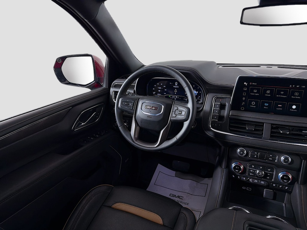 2024 GMC Yukon AT4 Volcanic Red Odometer is 4828 miles below market average! Back Up Camera, Heated Seats, 3rd Row Seats, Leather, Carfax One Owner, Yukon AT4, 4D Sport Utility, EcoTec3 6.2L V8, 10-Speed Automatic with Overdrive, 4WD, Volcanic Red, Black Leather, 12-Way Power Seat Adjusters, 15" Diagonal Multi-Color Head-Up Display, 2 Presets For Outside Rearview Mirrors, 3rd Row 60/40 Power-Folding Split-Bench Seat, 3rd row seats: split-bench, Apple CarPlay/Android Auto, Black Roof-Mounted Luggage Rack Side Rails, Bose 9-Speaker Stereo Audio System Feature, Bright Front & Rear Door Sill Plates, Following Distance Indicator, Forward Collision Alert, Front & Rear Park Assist, Front dual zone A/C, Front High-Approach Angle Fascia, Front Pedestrian Braking, Hands-Free Power Programmable Rear Liftgate, HD Surround Vision, Heated 2nd Row Outboard Position Seats, Heated Driver & Front Passenger Seats, Heated rear seats, Heated Steering Wheel, Heated steering wheel, Heavy-Duty Air Filter, Hill Descent Control, Inside Rear-View Auto-Dimming Mirror, IntelliBeam Automatic High Beam On/Off, Lane Change Alert w/Side Blind Zone Alert, Lane Keep Assist w/Lane Departure Warning, License Plate Front Mounting Package, Magnetic Ride Control Suspension, Navigation System, Outside Heated Power-Adjustable Mirrors, Perforated Heated & Ventilated Dr & Frt Pass Seats, Perforated Leather Seating Surfaces, Power Liftgate, Power Release 2nd Row 60/40 Split-Folding Bench Seat, Power Tilt & Telescopic Steering Column, Preferred Equipment Group 4SB, Rear Pedestrian Alert, Red Horizontal-Mounted Recovery Hooks, Roof rack: rails only, Safety Alert Seat, Technology Package, Universal Home Remote, Ventilated front seats, Wheels: 20" x 9" 6-Spoke Machined Aluminum, Wireless Charging. CARFAX One-Owner. Clean CARFAX.