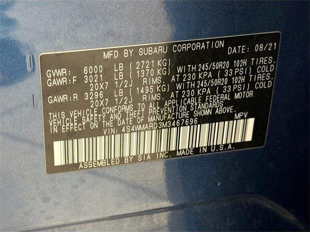 Abyss Blue Pearl 2021 Subaru Ascent Touring AWD Lineartronic CVT 2.4L 4-Cylinder DOHC 16V Ascent Touring, 4D Sport Utility, 2.4L 4-Cylinder DOHC 16V, Lineartronic CVT, AWD, Abyss Blue Pearl, Java Leather, 3rd row seats: bench, Exterior Parking Camera Rear, Front dual zone A/C, harman/kardon® Speakers, Heated & Ventilated Front Bucket Seats, Heated front seats, Heated steering wheel, Navigation System, Power Liftgate, Power moonroof, Radio: Subaru STARLINK 8.0" Multimedia Nav System, Reclining 3rd row seat, Splash Guards, Standard Model, STARLINK/Apple CarPlay/Android Auto, Ventilated front seats.
