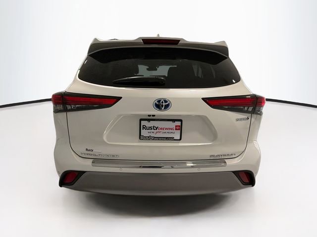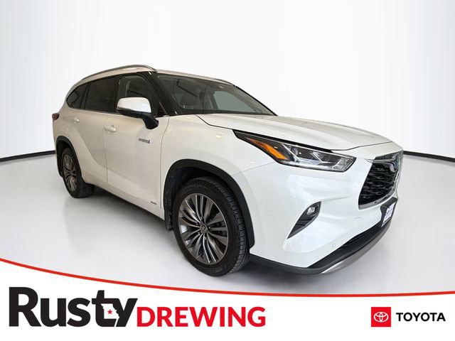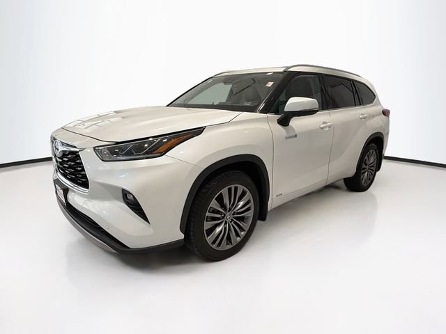 Blizzard Pearl 2021 Toyota Highlander Hybrid Platinum AWD eCVT 2.5L I4 PDI Hybrid DOHC 16V LEV3-SULEV30 186hp Highlander Hybrid Platinum, 4D Sport Utility, 2.5L I4 PDI Hybrid DOHC 16V LEV3-SULEV30 186hp, eCVT, AWD, Blizzard Pearl, Black Leather, 3rd row seats: split-bench, Apple CarPlay/Android Auto, Electronic Rear-View Mirror, Front dual zone A/C, Heads-Up Display, Heated & Ventilated Front Bucket Seats, Heated front seats, Heated rear seats, Heated steering wheel, High Grade LED, Navigation system: Dynamic Navigation (3-year trial), Panoramic Moonroof, Panoramic View Monitor, Platinum Package, Power Liftgate, Power moonroof, Radio: JBL Premium Audio w/Navigation System, Reclining 3rd row seat, Roof rack: rails only, Ventilated front seats, Wheels: 20" Platinum Alloy.