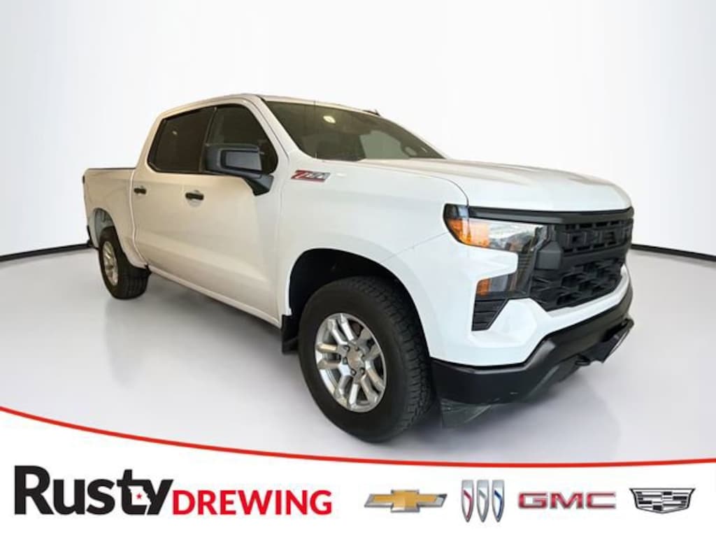 Certified. CARFAX One-Owner. Summit White 2024 Chevrolet Silverado 1500 WT 4WD 10-Speed Automatic EcoTec3 5.3L V8 Silverado 1500 WT, 4D Crew Cab, EcoTec3 5.3L V8, 10-Speed Automatic, 4WD, Summit White, Black Cloth, 3.5 Monochromatic Display Driver Info Center, Auto-Locking Rear Differential, Black (Semi-Gloss) Front Bumper, Black (Semi-Gloss) Rear Bumper, Black Manual Outside Mirrors, Bluetooth® For Phone, Chevrolet Connected Access Capable, Deep-Tinted Glass, Electric Rear-Window Defogger, Electrical Steering Column Lock, Electronic Cruise Control, External Engine Oil Cooler, Front Frame-Mounted Black Recovery Hooks, HD Rear Vision Camera, Heated Power-Adjustable Outside Mirrors, Heavy-Duty Air Filter, Hill Descent Control, Hitch Guidance, Inside Rear-View Mirror w/Tilt, Locking Tailgate, Manual Tailgate Function w/No EZ Lift, Manual Tilt Wheel Steering Column, Off-Road Suspension, OnStar & Chevrolet Connected Services Capable, Power Front Windows w/Driver Express Up/Down, Power Front Windows w/Passenger Express Down, Power Rear Windows w/Express Down, Preferred Equipment Group 1WT, Rear 60/40 Folding Bench Seat (Folds Up), Remote Keyless Entry, Rubberized-Vinyl Floor Covering, SiriusXM Delete, Solar Absorbing Tinted Glass, Standard Suspension Package, Standard Tailgate, Trailering Package, Wi-Fi Hot Spot Capable, WT Convenience Package, WT Value Package, Z71 Off-Road Package.